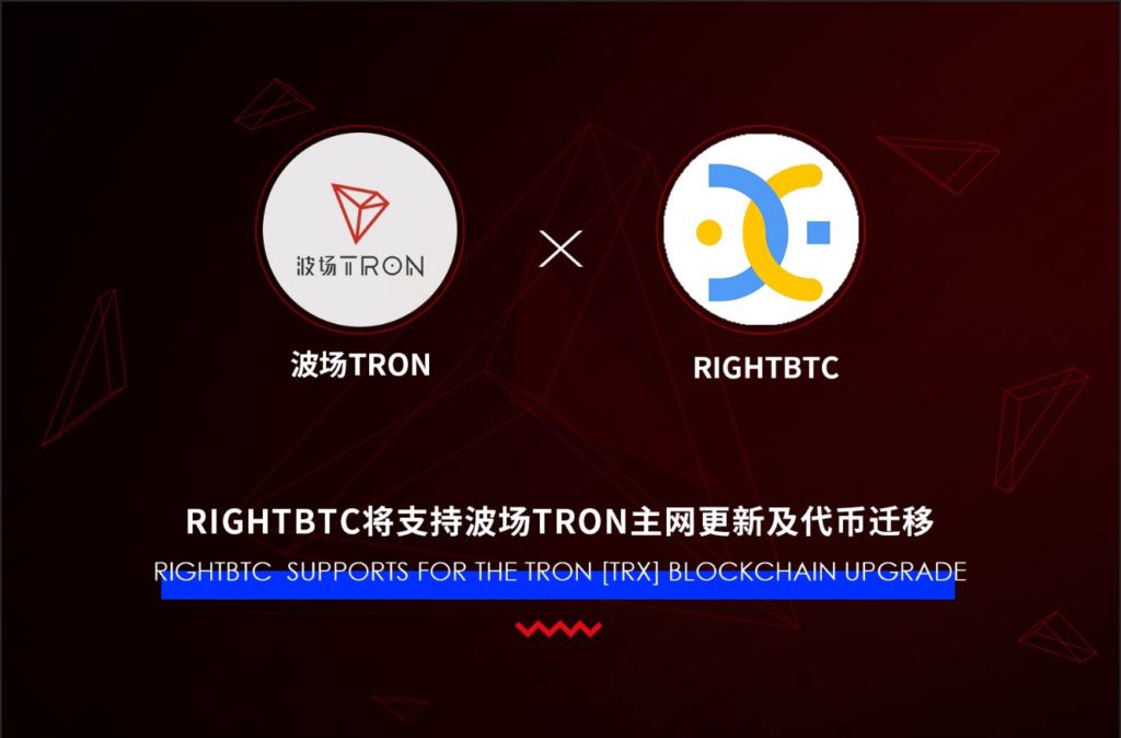 It is reported, TRON will launch virtual machine on May 25 (UTC+8), mainnet on May 31, token migration on June 21 and the first 27 super representative elections on June 26. With this date approaching, today, RIGHTBTC announced that it would support the TRON blockchain upgrade and token migration. Investors only need to deposit TRX’s ERC-20 tokens to RIGHTBTC before later June in 2018 (UTC+8) and will receive the equivalent TRX token after mainnet launch. No transaction is affected during the migration.
